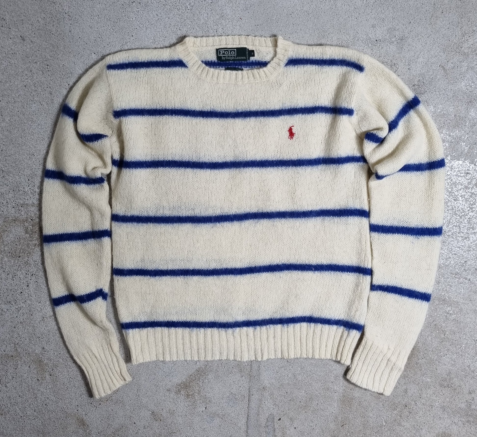 2000s Polo Ralph Lauren Strickpullover Breton Stripe Navy/Grey (S-M)