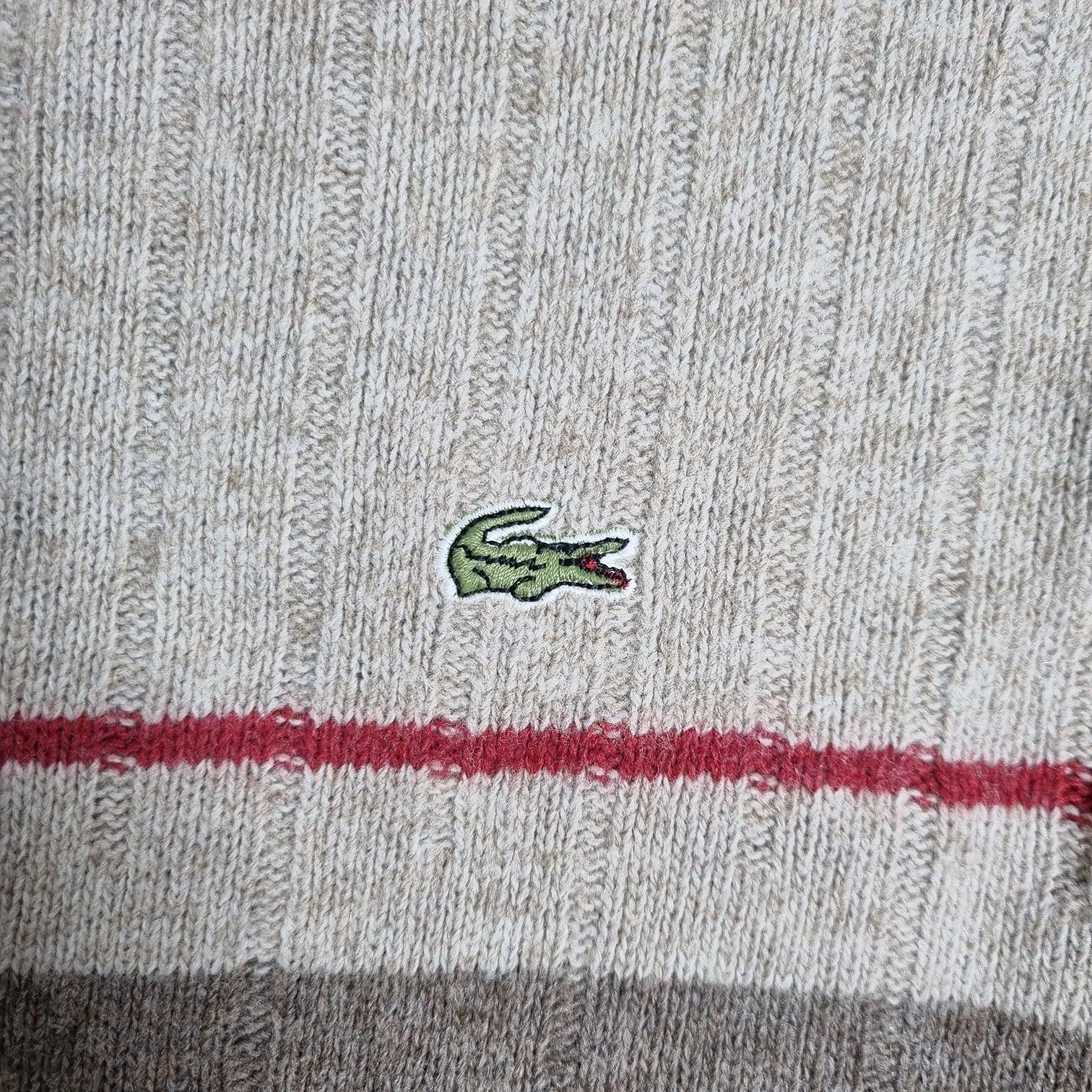 80s Lacoste “Made in France” Vintage Wool Sweater Beige / Brown / Red (M)