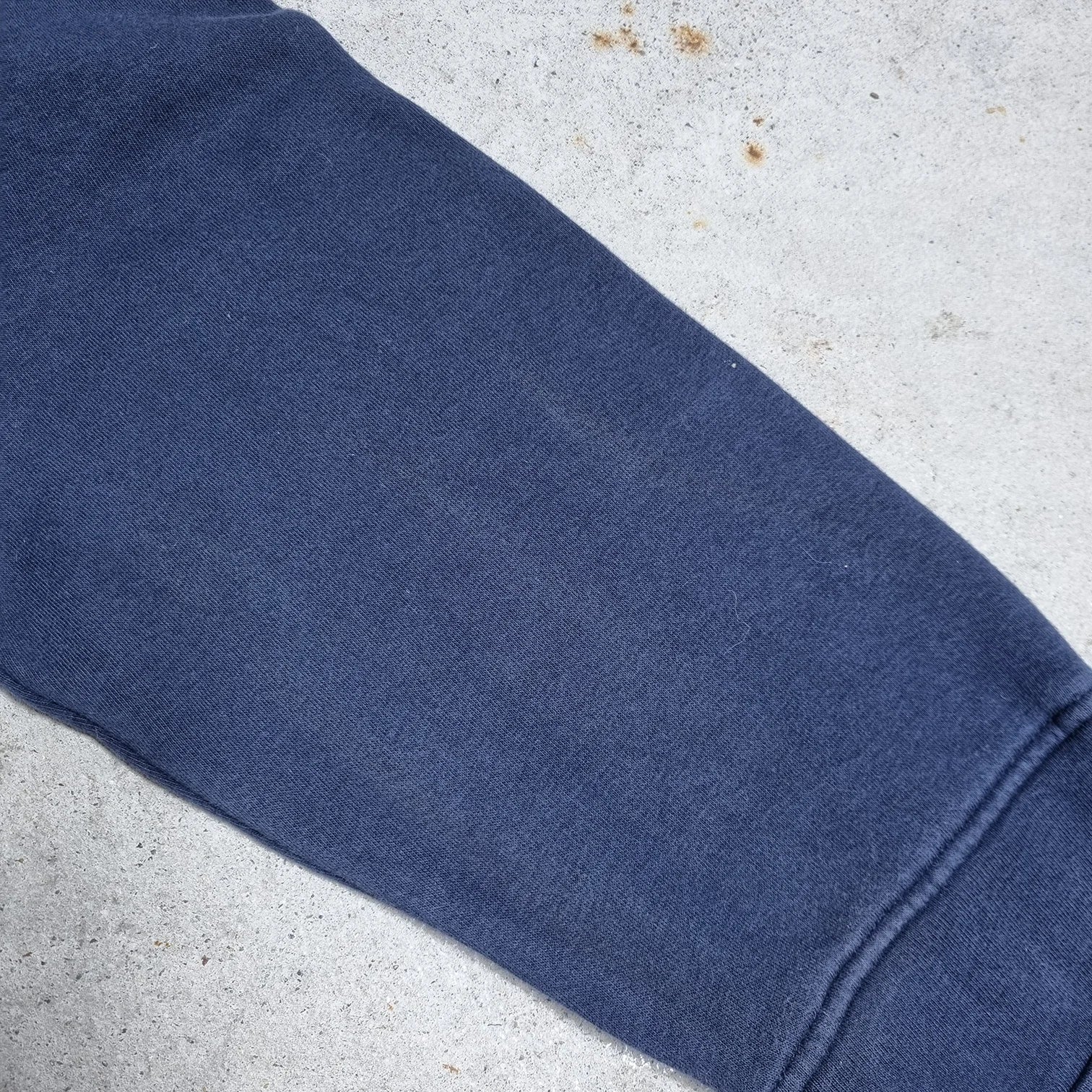 Seltenes adidas Vintage Half-Zip Sweatshirt aus der späten 1990er bis frühen 2000er Ära. Hergestellt in der Türkei, überzeugt das Piece durch sein zweifarbiges Raglan-Design in Navy und Steel Blue, minimalistisches Branding und eine klassische, leicht oversized geschnittene Passform.