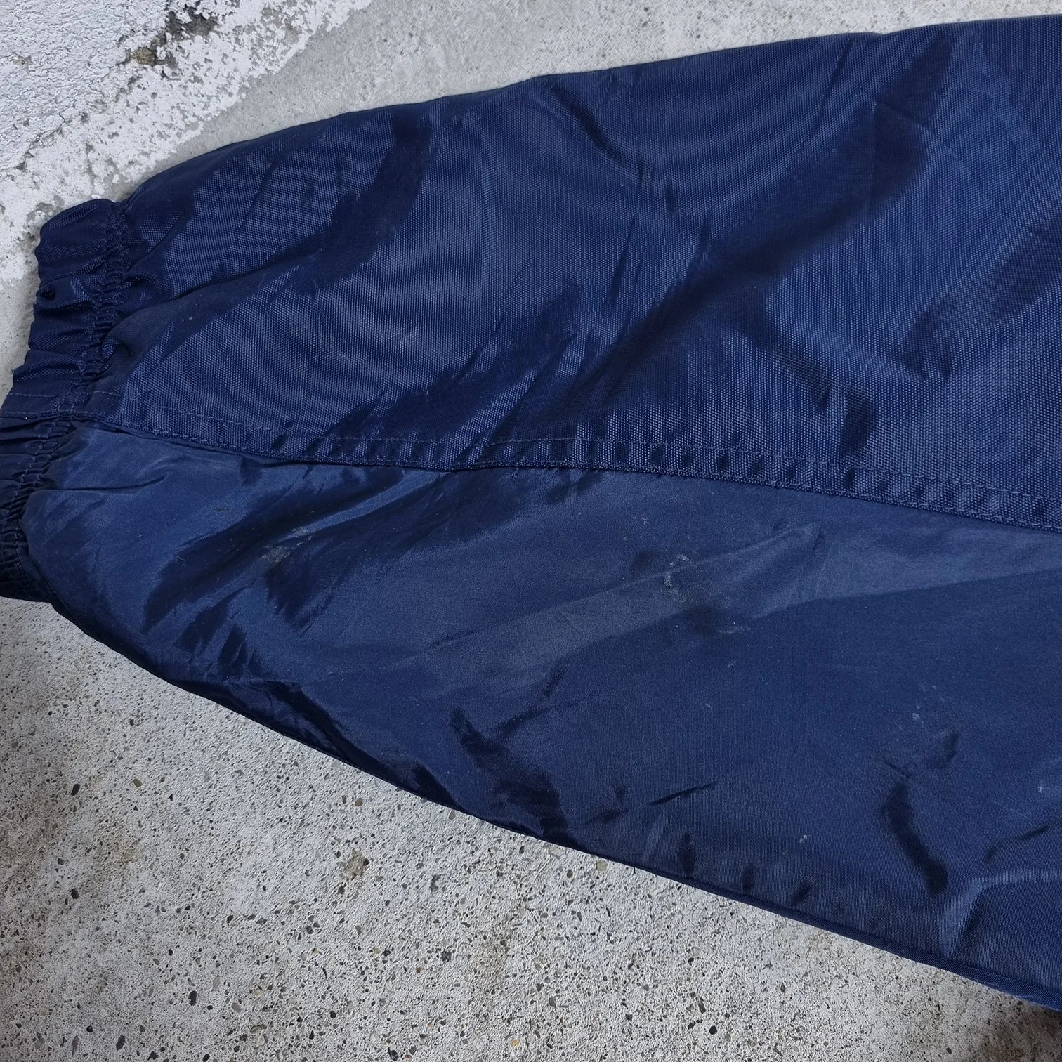 Typisch für die Ära: leichte Nylon-Qualität, verstellbarer Kordelzug am Saum und elastische Ärmelbündchen für eine sportliche Passform.