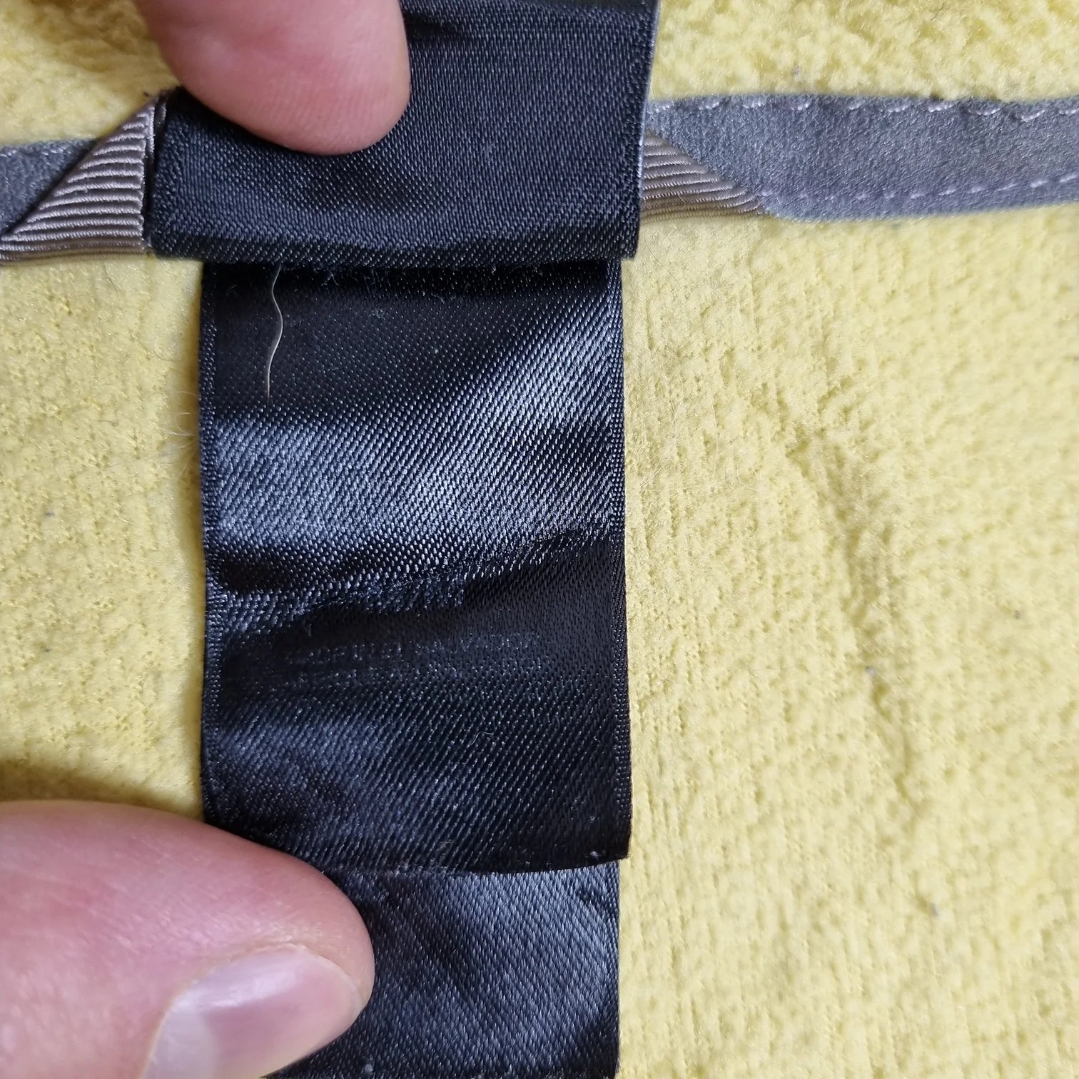 Leichte Abnutzung am unteren Saum, keine Löcher oder Verfärbungen.